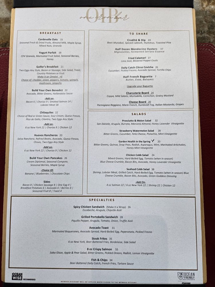 Welcome to One Iron Bar, a hidden gem nestled on the stunning grounds of Cordevalle Club in San Martin, CA. This vibrant kitchen and bar seamlessly blends a diverse menu that features delicious sandwiches, flavorful salads, and artistic cocktails, making it a perfect stop for both casual diners and gourmet enthusiasts.